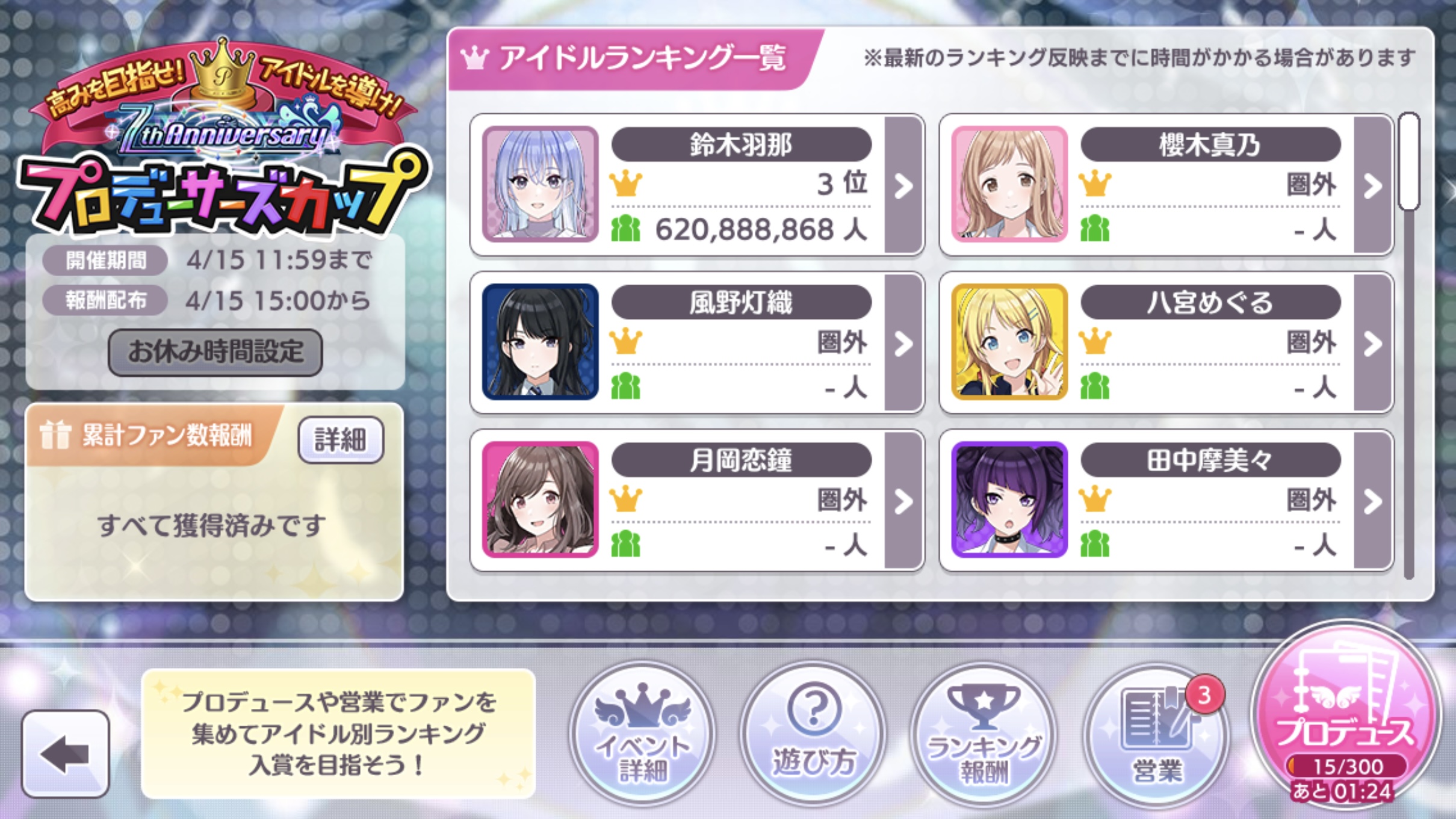 アイドルというジャンルが同じですが、学園の要素や実際に年度が替わると学年が上がるという設定は新鮮に感じました。学年が上がる裏付けとしてみつきの誕生日は満月とされていますが、学年(中2)から推定できる生まれ年の2011年の誕生日(9/12)は本当に満月だったりします。